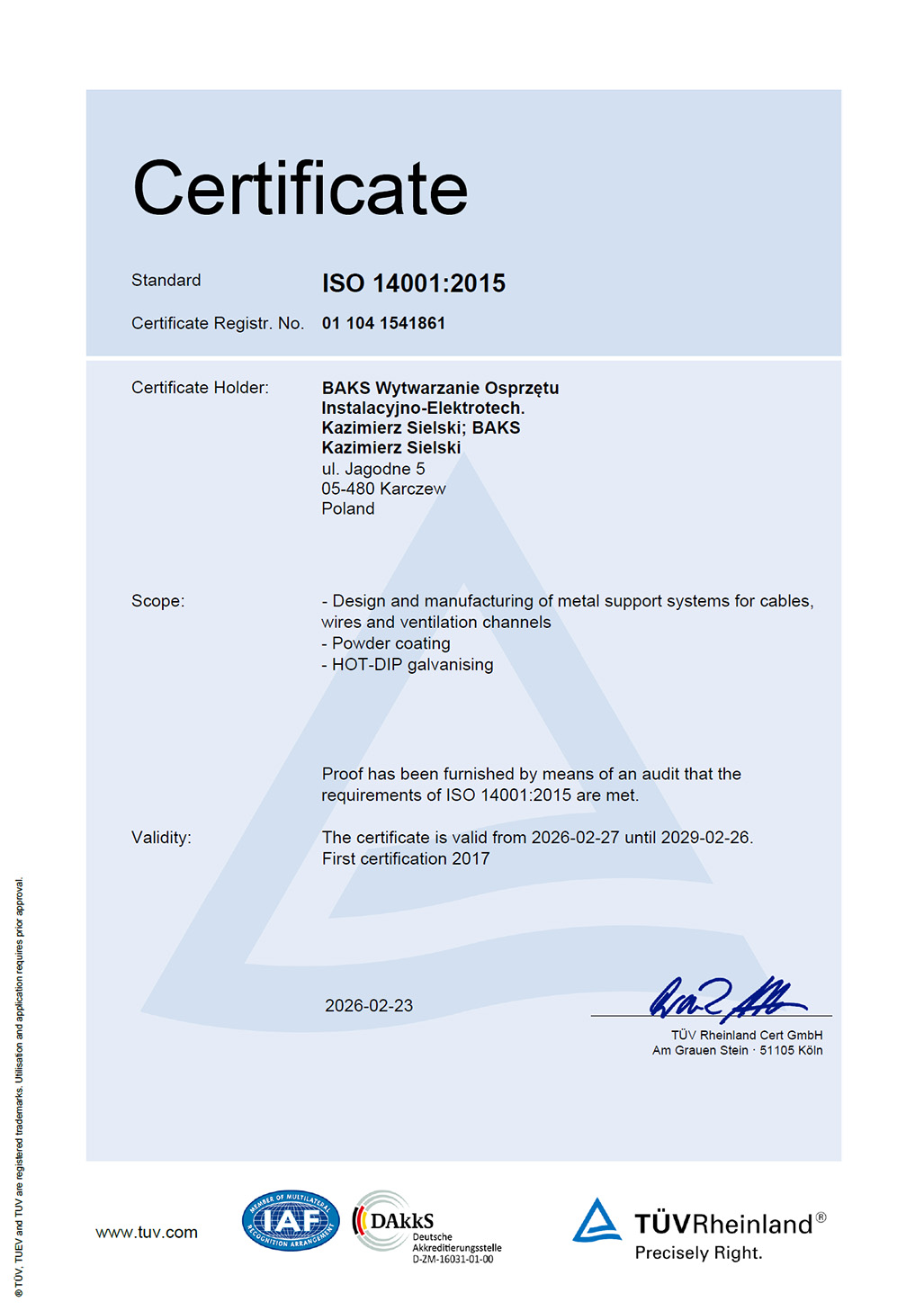 EN ISO 14001:2015 Certificate