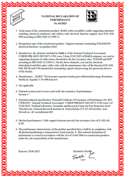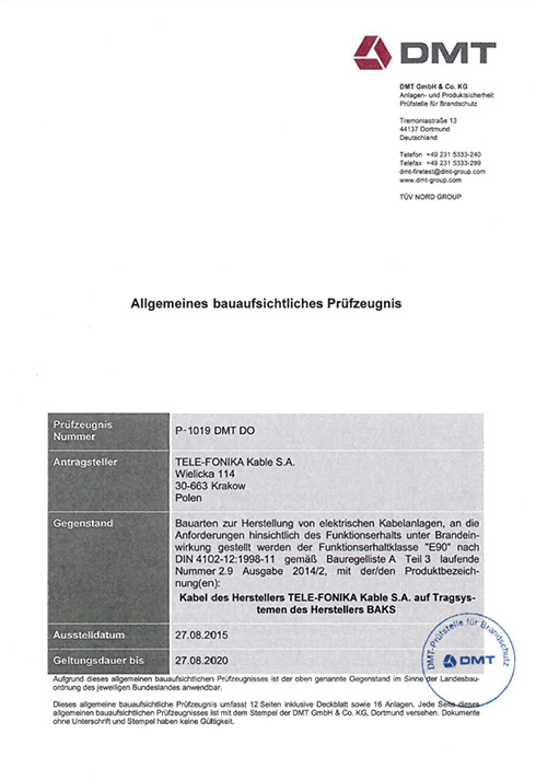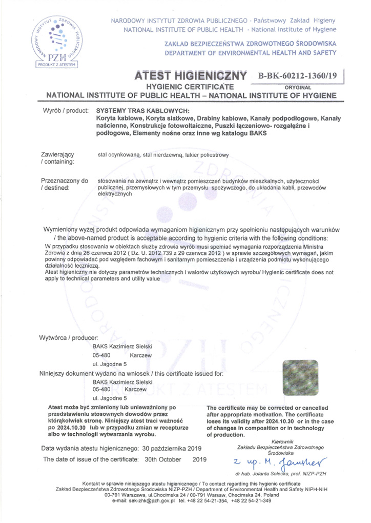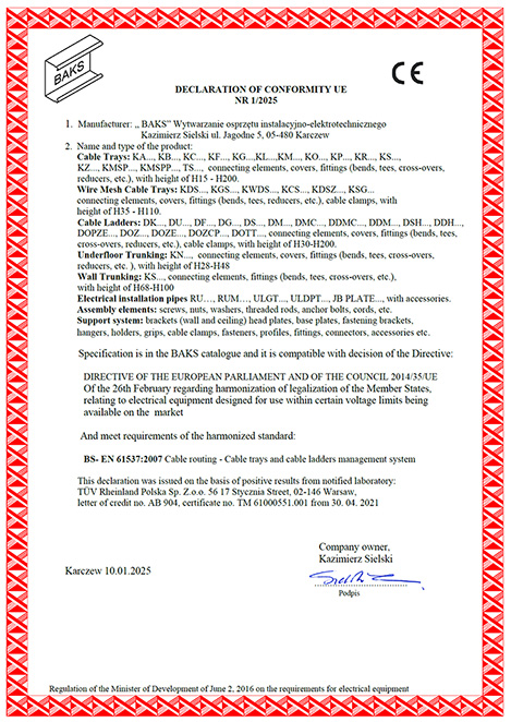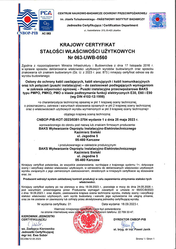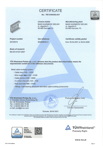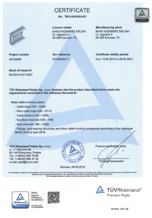 Certificate – Product Safety PN-EN 61537:2007