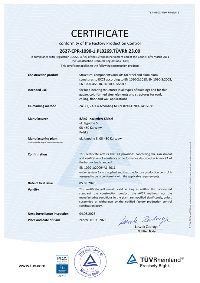Certificate EN 1090-1:2009+A1:2011