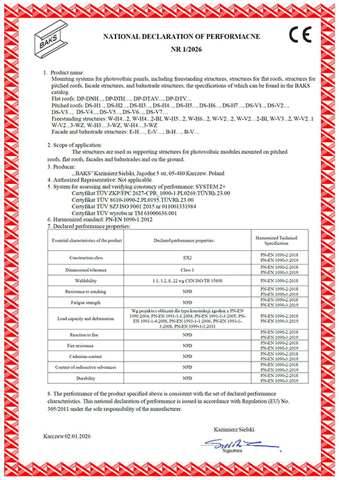 Certificate – PV panel installation systems